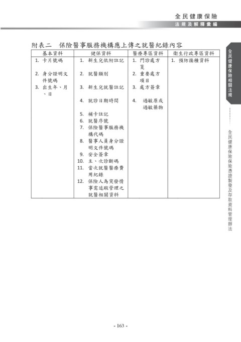 附表一 健保卡得存取資料內容 附表二 保險醫事服務機構應上傳之就醫紀錄內容 Ό͏ੰڭᎈᗫج