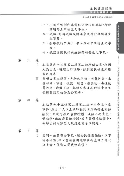 全民健康保險法規及解釋彙編 全民健康保險執行公共安全事故與重大交通事故公害