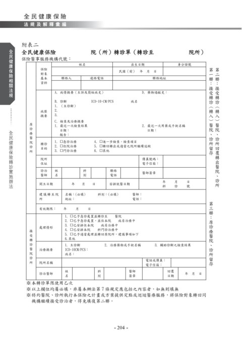 全民健康保險 院(所)轉診單(轉診至 院所)