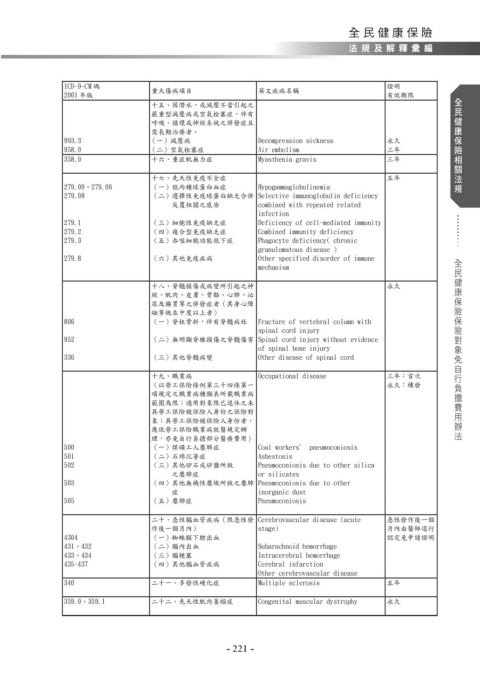 (三)使用侵襲性呼吸輔助器後改 of 21 or more days. 十九、職業病 Occupational disease 三年:首次