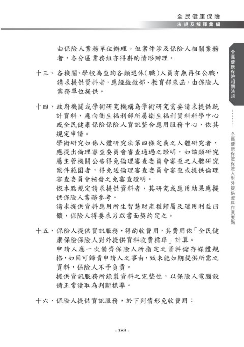 全民健康保險法規及解釋彙編 全民健康保險保險人對外提供資料作業要點