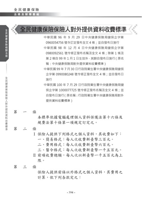 全⺠健康保險保險人對外提供資料收費標準
