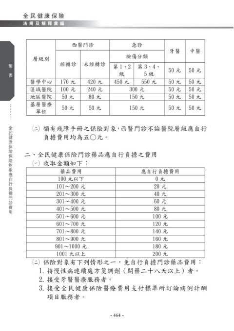 全民健康保險保險對象應自行負擔門診費用 全民健康保險法規及解釋彙編